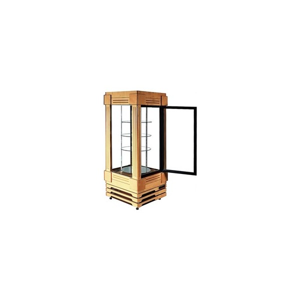 LED osvětlení, otočné kulaté police, rozteč polic lze měnít,nerez.výstavní plocha, napětí 230 V / 50 Hz